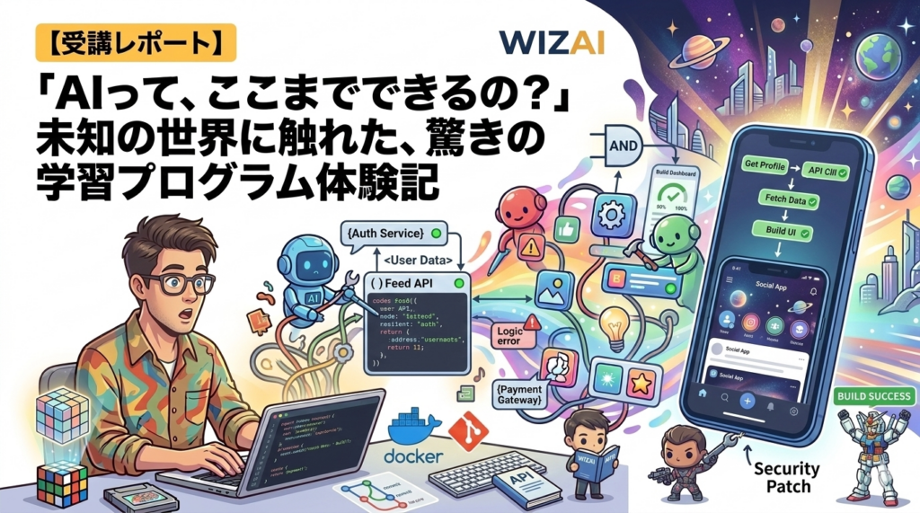 プログラミングやシステム開発と聞くと、皆さんはどんな光景を想像しますか? ずらりと並んだコードを黙々と打ち込み、エラーが出るたびに頭を抱える――そんなイメージは、そろそろ過去のものになるかもしれません。 先日、田中幸一郎講師によるWIZAIの学習... -