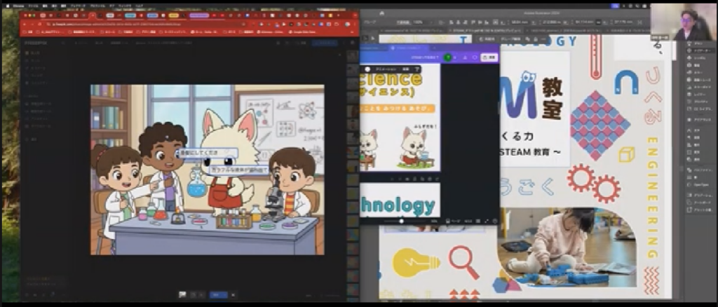 - アイデア出し: チャットAI(ChatGPTやGeminiなど)に「STEAM教室の資料に使うアイコンのアイデアを出して」と依頼。